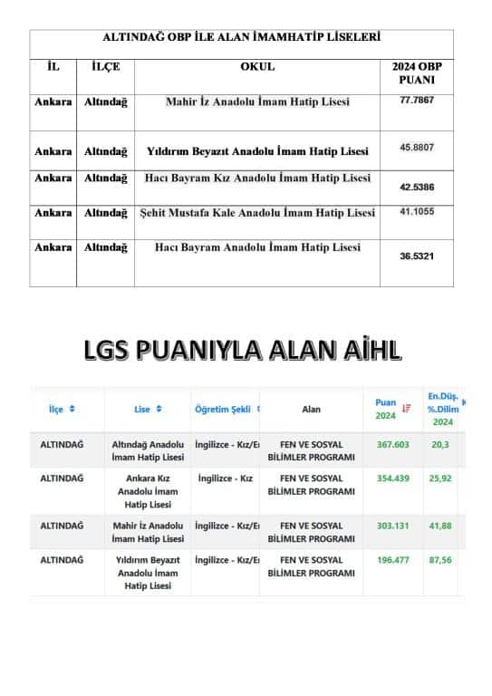 ALTINDAĞ'daki Ortaöğretim Başarı Puanıyla Alan (OBP) Meslek Liselerini, Bölümlerini ve Dallarını sizler için listeledik. Lise tercihlerini yaparken önemli olan öğrencinin ilgi ve yetenekleri doğrultusunda bölüm belirlemek sonrasında okul seçmek.